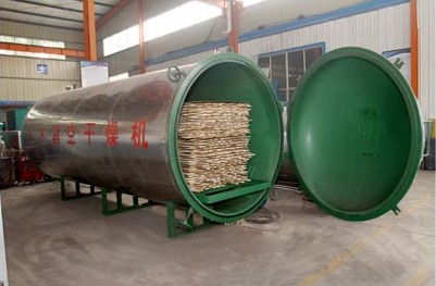 真空狀態,主要利用真空狀態下水的沸點較低,蒸發速度加快,木材表面的含水率梯度增大,木材在干燥過程中,一方面表面水分向周圍空氣中蒸發,另一方面內部的水分不斷地向表面移動,所以在較低的溫度下加快了干燥速度,這樣就能保證木材的干燥質量。而真空狀態是一種負壓狀態,有一定吸水作用,與高頻的壓力梯度正好相似,也加速了木材芯部水分排出,此外,在低壓條件下,干燥介質中的氧氣,因熱作用與氧化作用引起的物料變色少,基本上可以保持名貴木材的天然色澤。